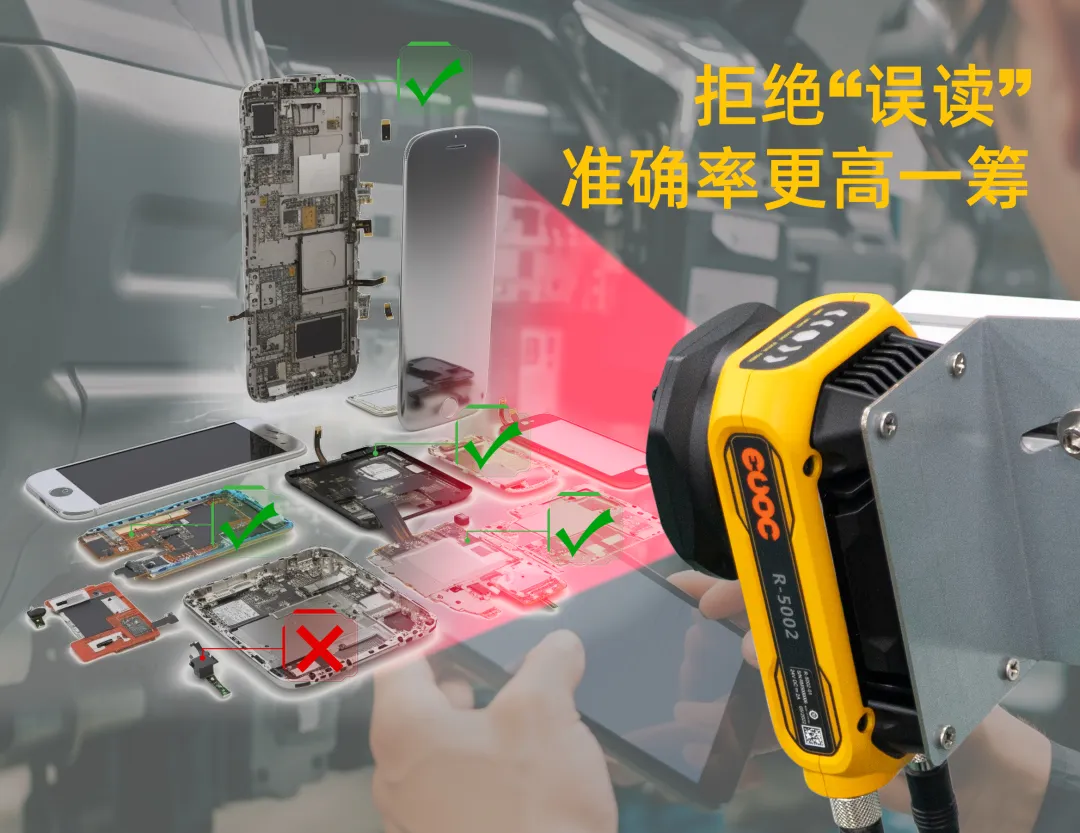 JDB电子R-5000系列智能读码器支持ROI顺序输出模式,可以快速定位误读产品确认问题。同时搭载快速响应的影像传感器,确保每一个图像质量精细优异,实现高精准读取。